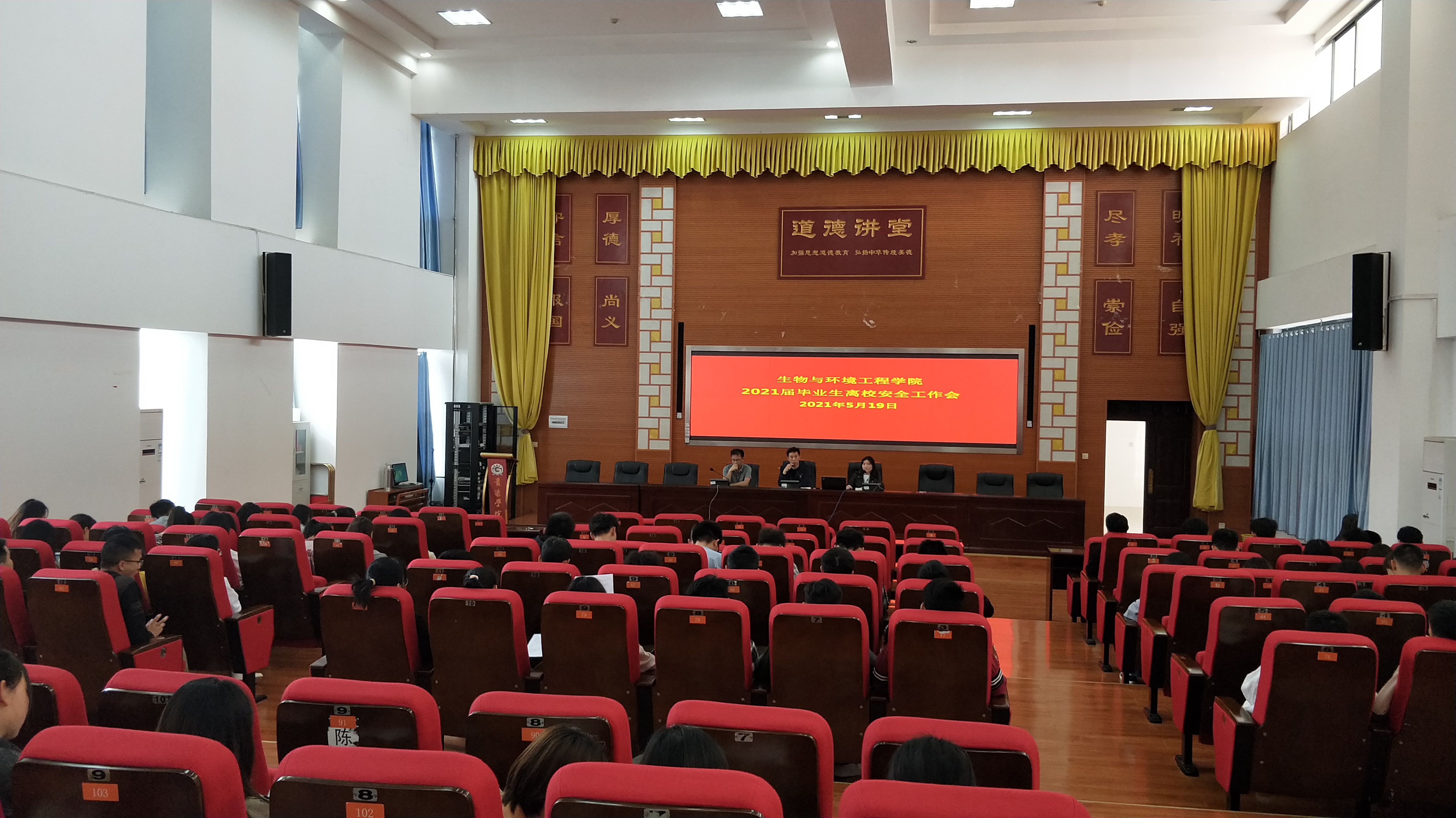 2021年5月20日下午,z6mg人生就是博官网在博雅楼道德讲堂举行2021届毕业生离校工作会,就相关工作进行安排。