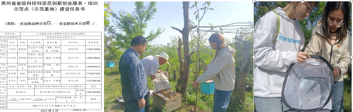 2025年4月15日,z6mg人生就是博官网教师党支部党员刘洋洋作为省级科技特派员,积极践行“强国行”专项行动,利用自身专业优势,对黔东南州黄平县农业支柱产业——蜂产业进行了调研工作,特别关注关键核心实用技术的示范与推广。作为项目负责人,刘洋洋携手4名科技特派员以及合作单位黄平县仰朵皓宇蜜蜂养殖专业合作社,共同推进了名为《中华蜜蜂虫害大蜡螟防治技术示范基地建设》的项目,旨在保障黔东南州黄平县农业产业的高质量发展。同时,为提升员工的实践操作能力和科研探究能力,刘洋洋还带领自己指导的员工,积极参与到中华蜜蜂蜂群的调研和相关实验的工作中,积极推进蜂产业的发展。