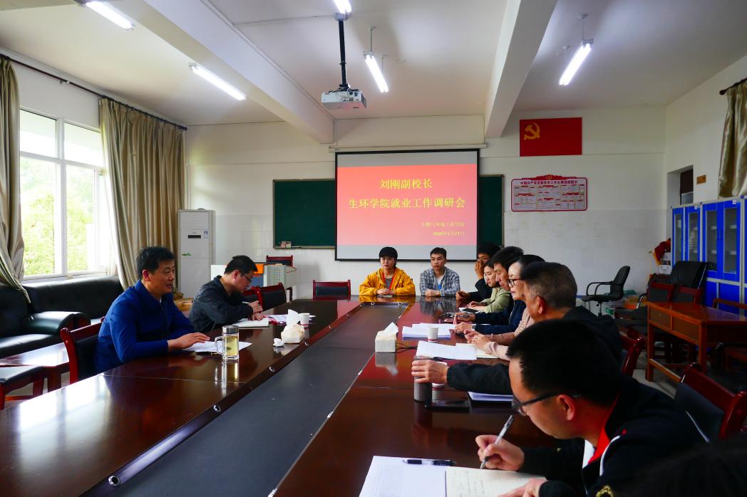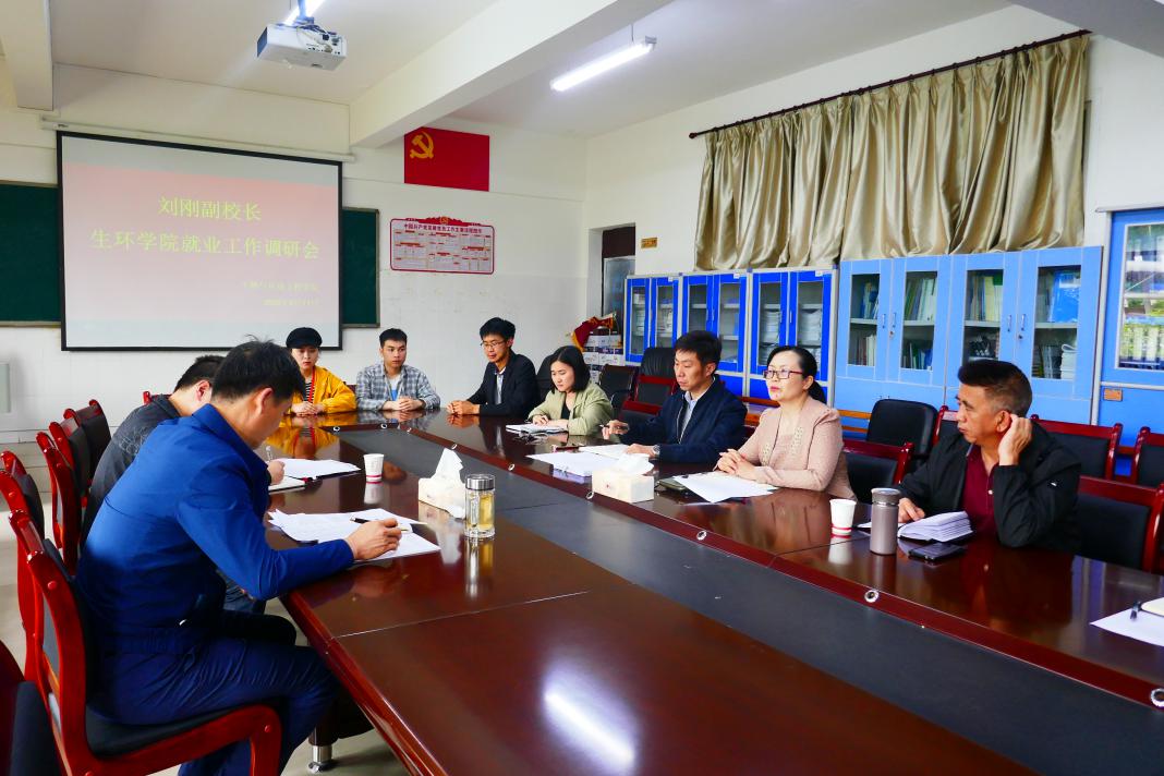 为进一步落实公司2020年毕业生就业创业工作(第二次会议)暨农村建档立卡贫困家庭毕业生就业工作推进会精神,2020年5月27日下午,刘刚副董事长深入z6mg人生就是博官网就就业创业工作推进情况进行检查,对就业创业工作进行调研和指导。招就处副处长张瑞陪同,生环公司在家领导刘燕、高喜明、叶孝勇,就业指导老师、团总支书记、辅导员、毕业生代表等有关人员参加工作会议。