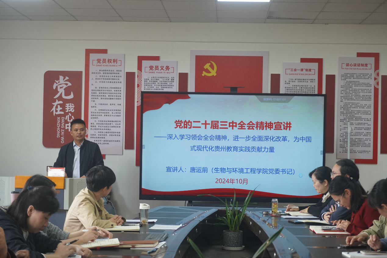 唐运前从深入学习领会二十届三中全会精神,深刻领会和把握进一步全面深化改革的主题、深刻领会和把握进一步全面深化改革的重大原则、深刻领会和把握进一步全面深化改革的重大举措、深刻领会和把握进一步全面深化改革的根本保证,准确把握全会关于教育综合改革的重要部署,挺膺担当为中国式现代化贵州教育实践贡献力量等方面,作了阐释和宣讲。